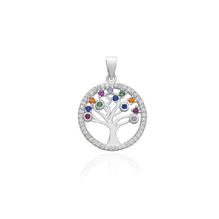 Colgante Plata Chapada Arbol Vida Con acabado Luxury de Circonitas Variocolo. Todos nuestros colgantes traen una cadena de plata de regalo. Plata 925 o en Plata y Baño de oro.