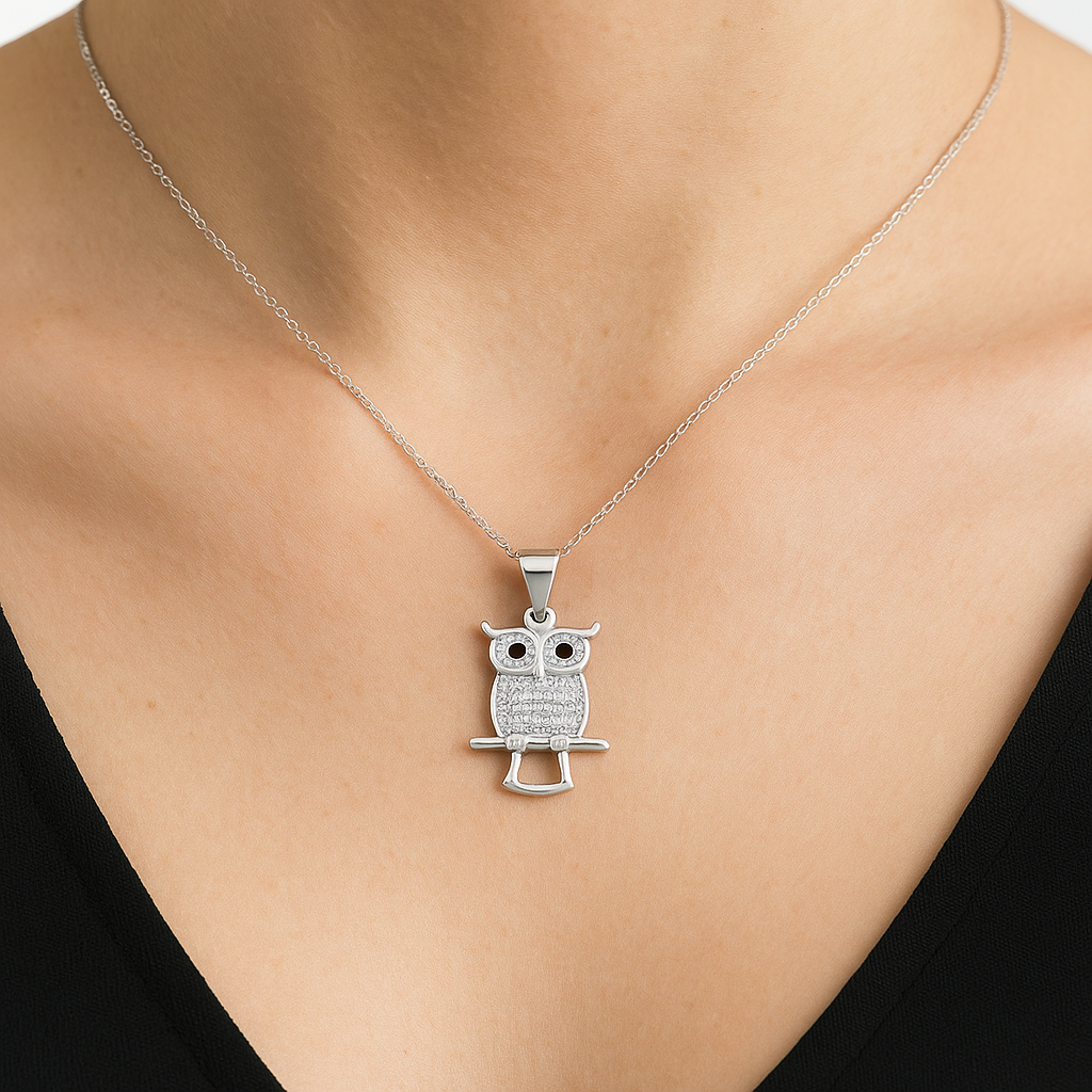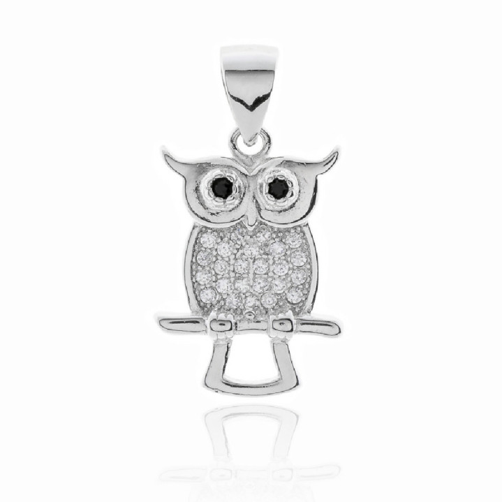 Colgante buho de 18mm en plata 925, todos nuestros colgantes traen una cadena de regalo.