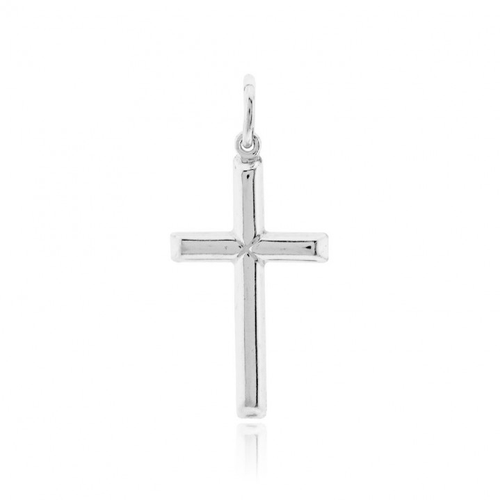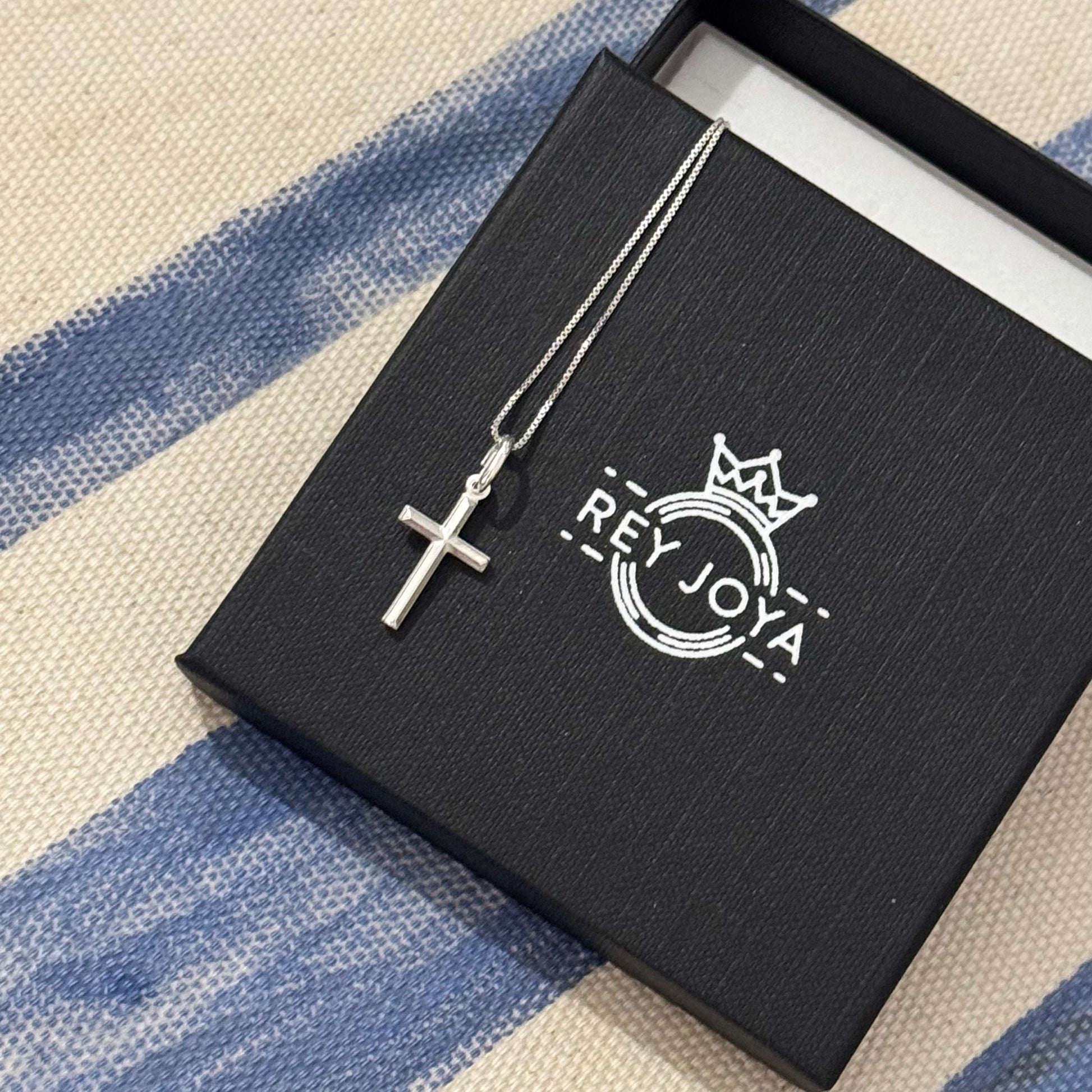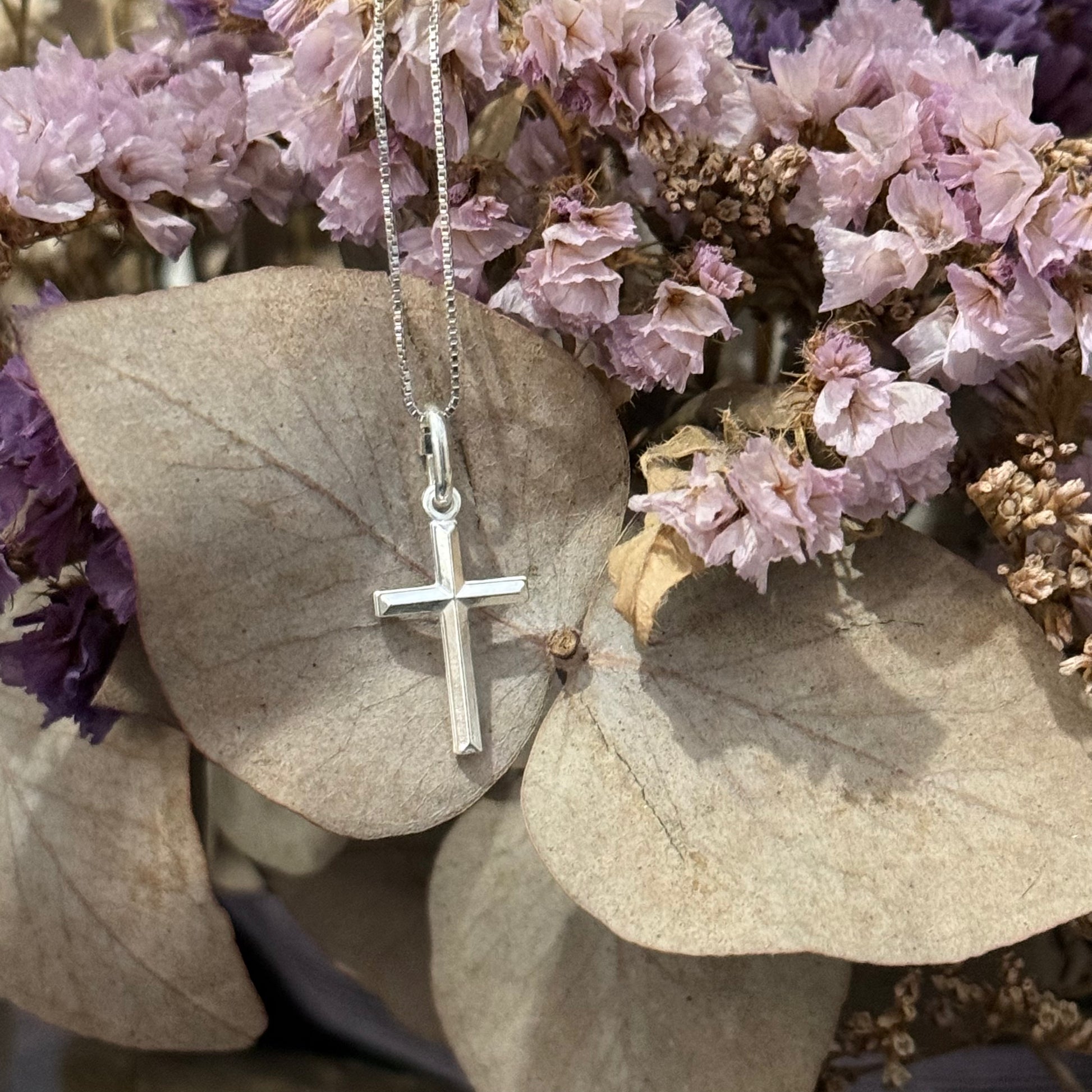 Cruz de plata liso, disponible en varios tamaños. Todos los colgantes traen una cadena de plata de regalo.