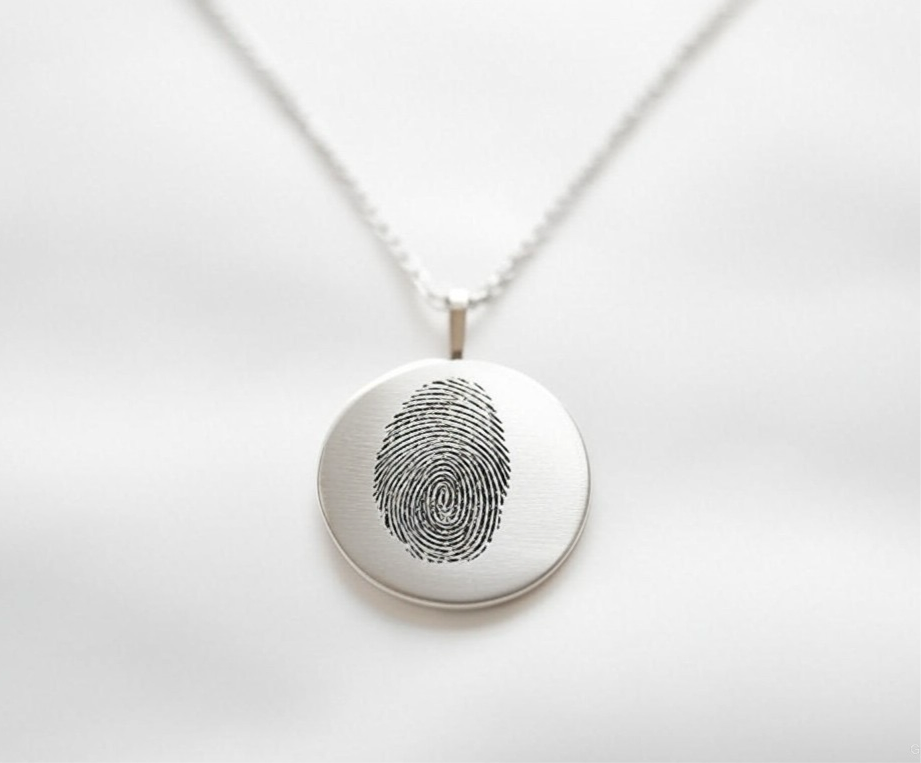 Este colgante personalizable en plata 925 (o chapado en oro) graba la huella real de tu hijo, tu pareja, tu madre, convirtiéndola en una joya delicada y llena de significado.