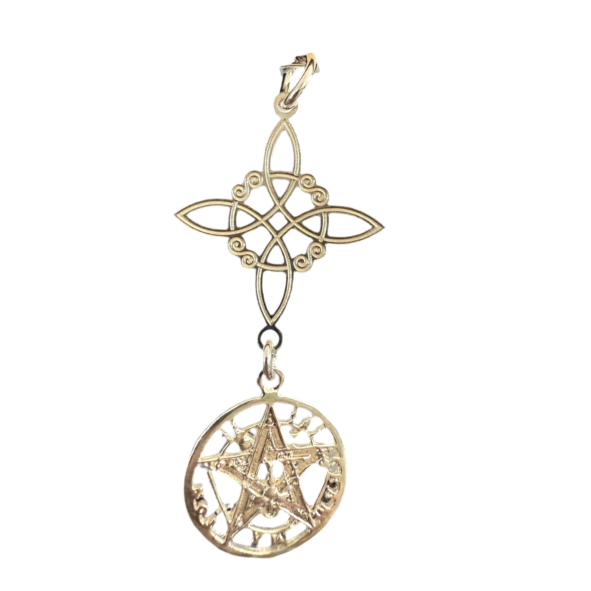 Colgante Nudo de Bruja y Tetragramaton, en plata 925. 30mm aproximadamente de tamaño. Todos los colgantes traen cadena de plata de regalo.