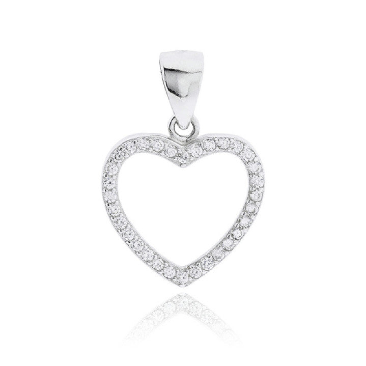 Colgante de plata rodiada con circonitas 12 mm Corazón. Todos nuestros colgantes traen una cadena de plata de regalo.