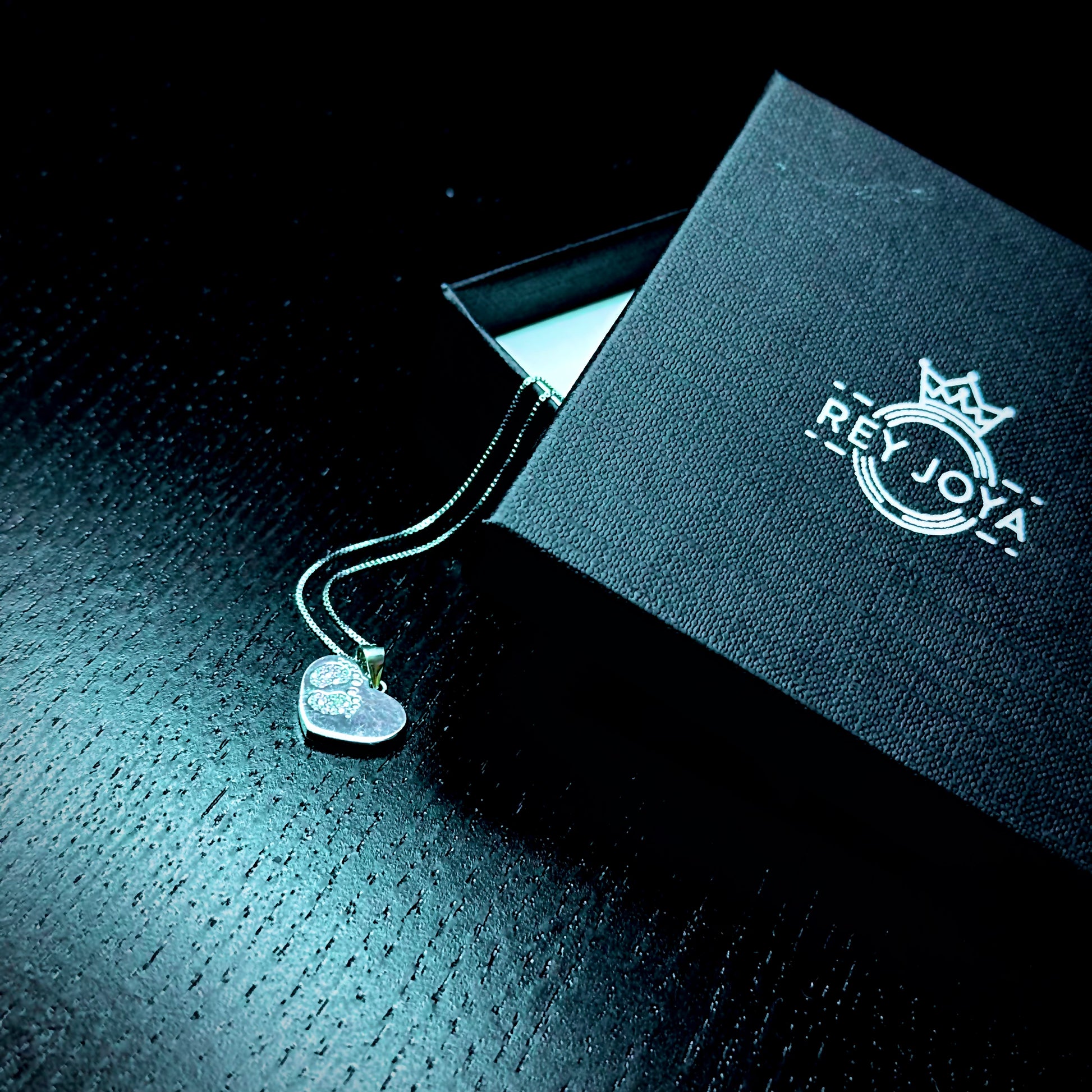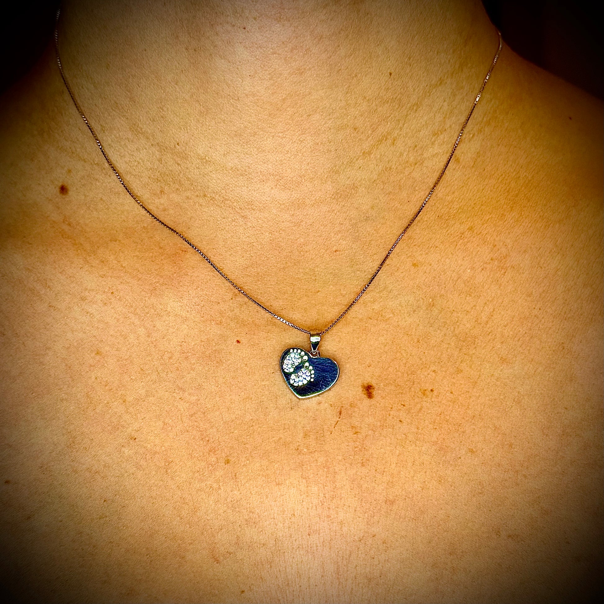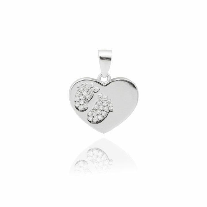 Colgante Plata Corazón Huellas. Todos nuestros colgantes traen una cadena de plata de regalo.