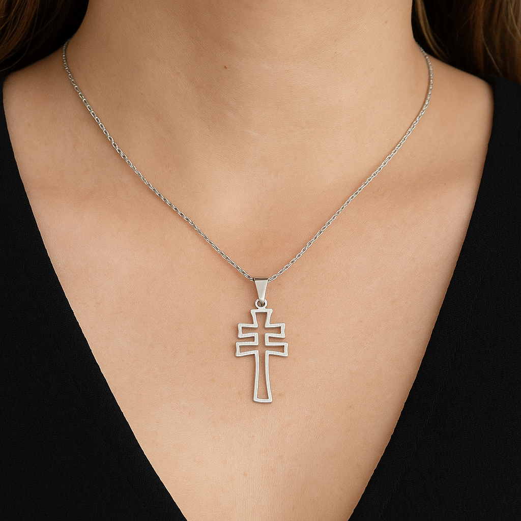 Colgante de Plata Cruz de Caravaca 40 x 17 mm. Todos nuestros colgantes traen una cadena de plata de regalo.