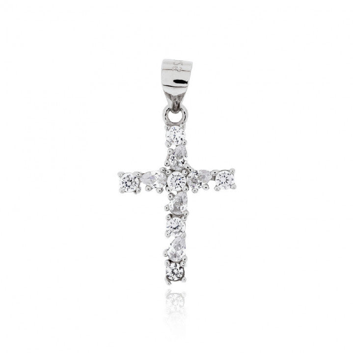 Colgante de plata rodiada con circonitas y piedras. Todos nuestros colgantes traen una cadena de plata de regalo.
