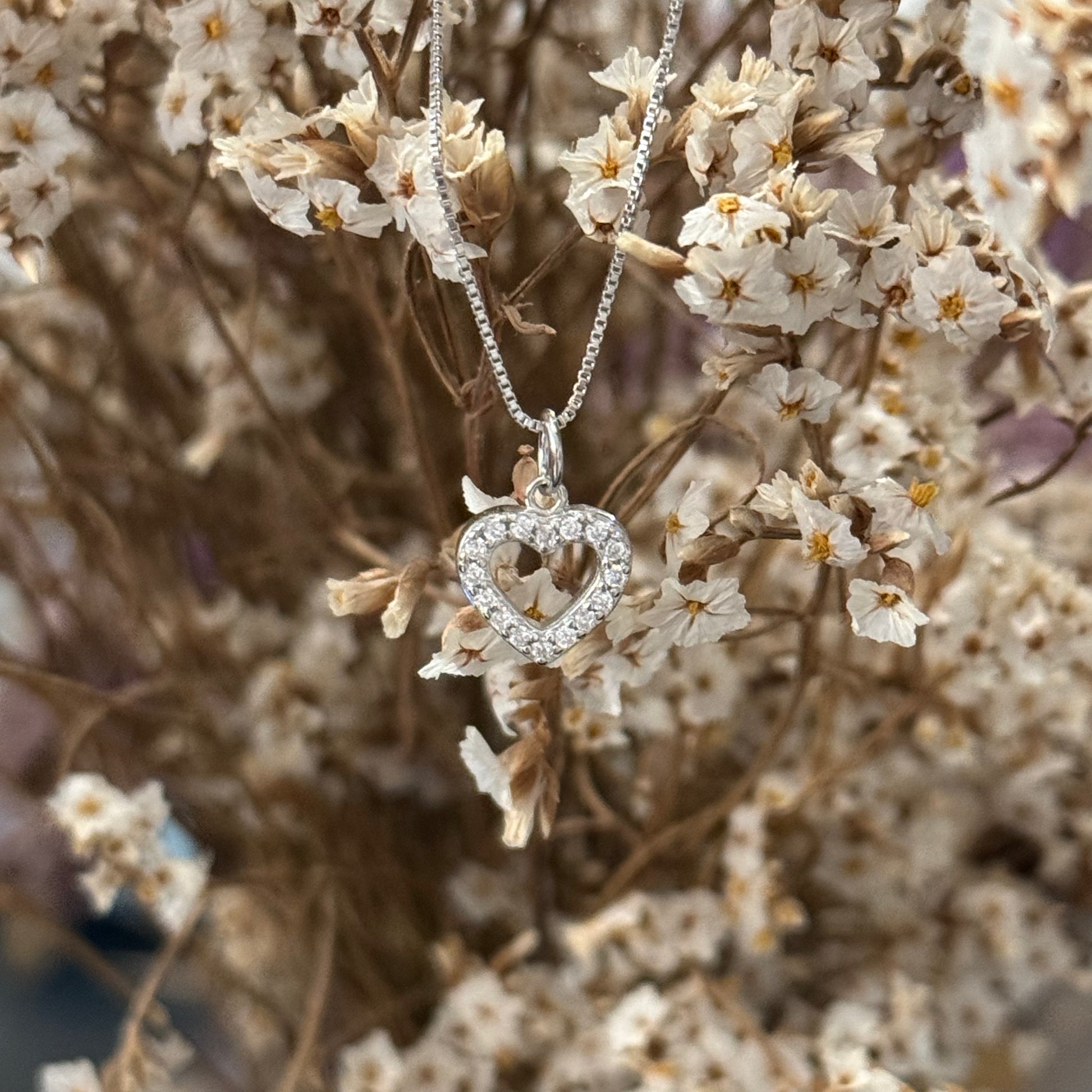 Gargantilla con Corazón de Circonitas en Plata rodiada