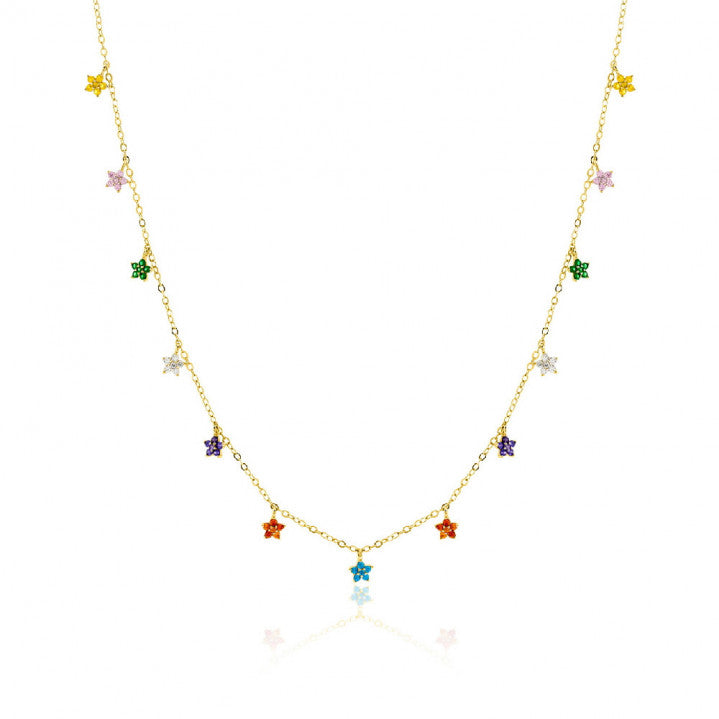 Gargantilla de plata Rodeada Estrellas con circonitas dorado