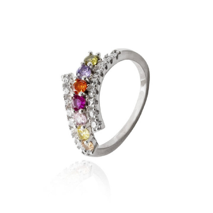 Sortija Plata Rodio Circonitas Multicolor asimétrico.